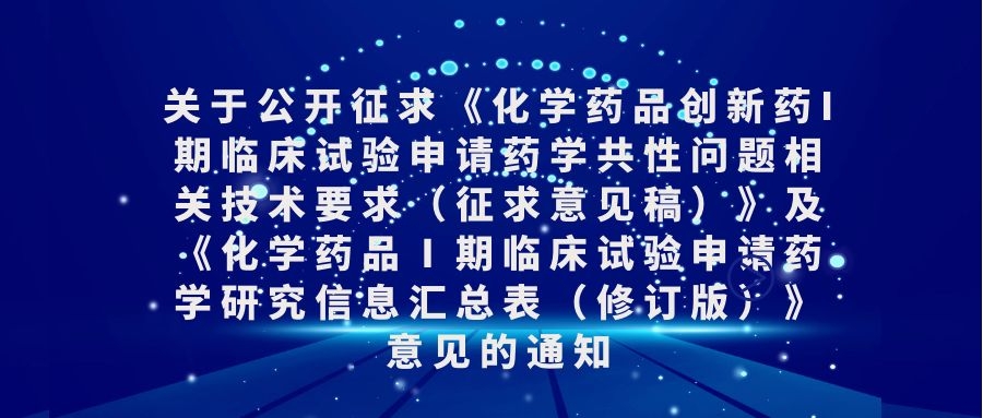 關于公開征求《化學藥品創新藥I期臨床試...
